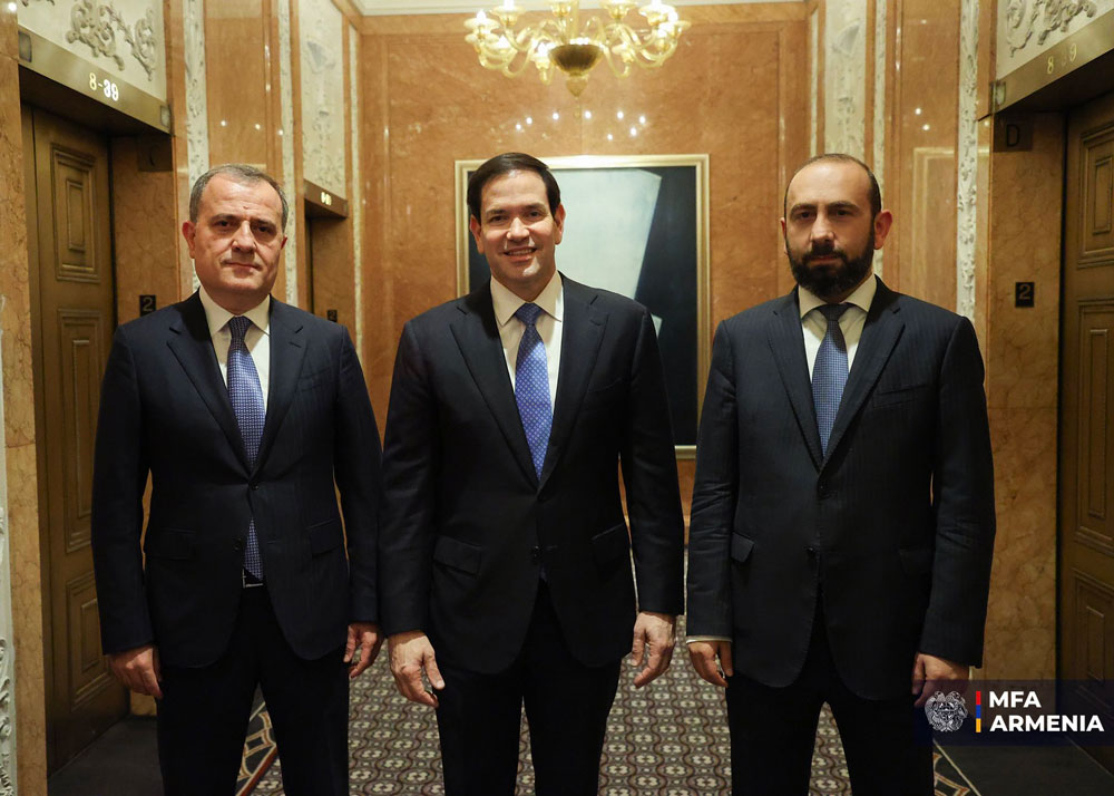 Հայաստանի արտաքին գործոց նախարար Արարատ Միրզոյեան Նիւ Եորքի մէջ եռակողմանի կարճատեւ շփումներ ունեցաւ Ամերիկայի Միացեալ Նահանգներու պետական քարտուղար Մարքօ Ռուպիոյի եւ Ատրպէյճանի արտաքին գործոց նախարար Ճէյհուն Պայրամովի հետ։