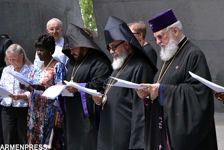 Եկեղեցիներու համաշխարհային խորհուրդի (ԵՀԽ) Գործադիր կոմիտէի անդամները այցելեցին Ծիծեռնակաբերդի յուշահամալիրը, ուր աղօթք յղեցին առ Աստուած 1915-ի անմեղ զոհերուն համար, դատապարտեցին ցեղասպանութիւններն ու մերժողականութիւնը, աղօթեցին Իրաքի քրիստոնեաներու, առեւանգուած հոգեւորականներու, ինչպէս նաեւ աշխարհի վրայ խաղաղութեան հաստատման համար։ Այնտեղ հրապարակուեցաւ նաեւ ԵՀԽ-ի յայտարարութիւնը՝ Մեծ եղեռնի 100-րդ տարելիցին կապակցութեամբ։ Մասնաւորապէս ընդունուած յայտարարութեամբ կոչ կ՚ուղղուի միջազգային հանրութեան, ԵՀԽ-ի անդամ երկիրներուն եւ բարի կամքի տէր մարդոց՝ յիշատակելու Մեծ եղեռնը եւ այդպէսով կանխելու ցեղասպանութիւնները եւ մարդկութեան դէմ միւս յանցագործութիւնները։