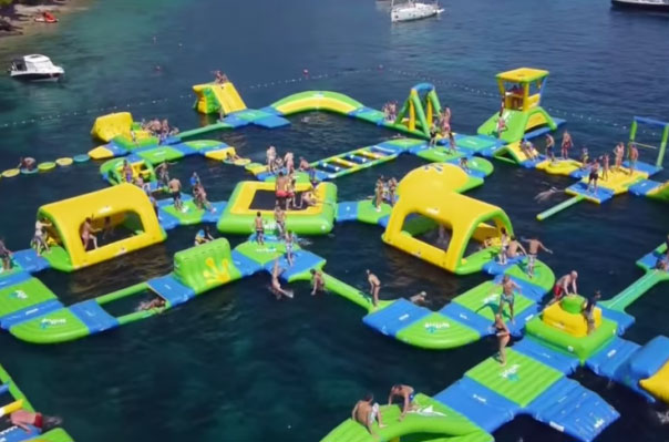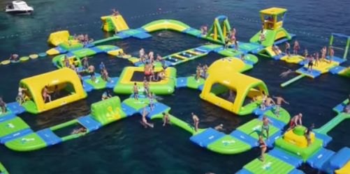 Գերմանական ընկերութիւն մը հանդէս եկած է նորարար գաղափարի իրականացմամբ: Ան ջուրին վրայ ծփացող ուռեցուած հսկայական խաղահրապարակ մը կառուցած է: Այս մտայղացումը իրականացուցած է Wibit Sports ընկերութիւնը, որ կը մասնագիտանայ ջուրի մէջ կիրառելու համար փչովի խաղեր ու մարզական սարքաւորումներ ստեղծելու գործին մէջ: Այս միահիւսուած մասերով խաղահրապարակը ստեղծելու ժամանակ ընկերութիւնը ներշնչուած է Lego-էն: Տարբեր մասեր կարելի է անջատել եւ միացնել իրարու՝ ըստ նախասիրութեան: Նմանօրինակ խաղահրապարակներու արժէքը կը սկսի 3875 տոլարէն:
