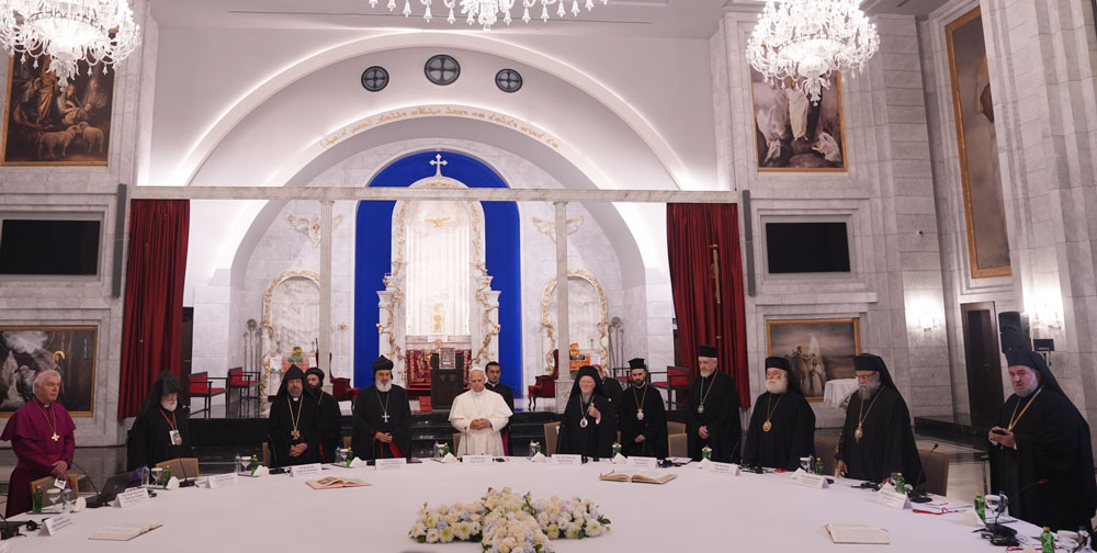 Երէկ առաւօտեան այս այցելութեան առընթեր, Սրբազան Պապի ծրագիրը յագեցած էր շաբաթավերջին։ Նիկիոյ առաջին տիեզերաժողովի 1700-ամեակին առթիւ, շաբաթ առաւօտ, Եշիլգիւղի Մոր Էֆրեմ Ասորի Ուղղափառ եկեղեցւոյ մէջ տեղի ունեցաւ միջեկեղեցական խորհրդակցական ժողով մը։ Կլոր սեղանի ձեւաչափով, դռնփակ այս ժողովի հիւրընկալն էր Ասորի Ուղղափառ եկեղեցւոյ Տ.Տ. Իգնատիոս Բ. Պատրիարքը։ Սրբազան Պապին եւ Պարթոլոմէոս Ա. Ուղղափառաց Տիեզերական Պատրիարքին առընթեր մասնակցեցաւ նաեւ Ամեն. Ս. Պատրիարք Հայրը՝ ներկայացնելով Ամենայն Հայոց Կաթողիկոսը։ Ներկայ էին նաեւ Աղեքսանդրիոյ եւ համայն Ափրիկէի Թէոդորոս Բ. Յոյն Ուղղափառ եկեղեցւոյ պատրիարքը, Մալանկարայի Ասորի Ուղղափառ եկեղեցւոյ Մատթէոս Գ. Կաթողիկոսը եւ Արեւելքի հիմնական եկեղեցիներու գահակալներու ներկայացուցիչները՝ ներառեալ Տ. Կոմիտաս Արք. Օհանեան, որ Մեծի Տանն Կիլիկիոյ Կաթողիկոսութիւնը կը ներկայացնէր։