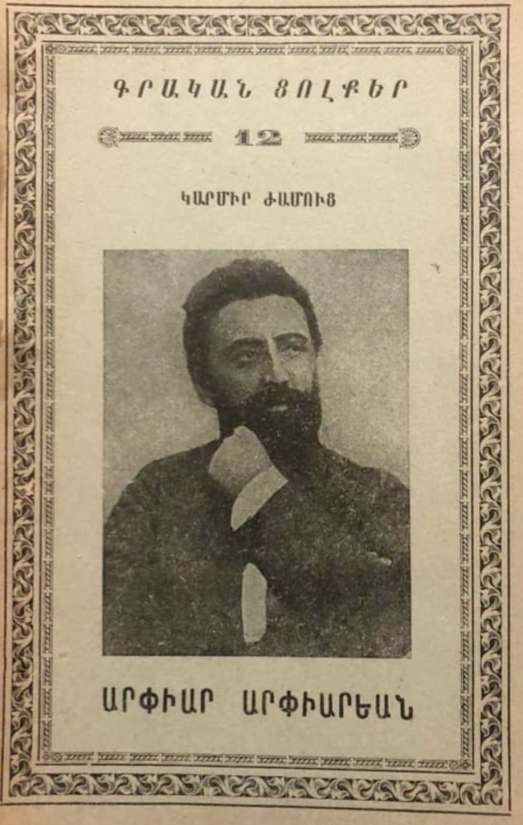 ՏԻԳՐԱՆ ԱՐՓԻԱՐԵԱՆ, «Մասիս» շաբաթաթերթին հիմակուան խմբագիրը, կեանքի ջախջախուածներուն սիրահար գրագէտն է. անոնց համար միշտ արցունք մը ունի։ Հիւծուած պատանին մահճին վրայ կը յառի, սիրտը անոր սրտին վրայ կը դնէ. գերեզմանները կը դեգերի ու կ՚երազէ։ Օրուան դժբախտութենէ մը սիրտը վիրաւորուած, նոյն րոպէին թուղթին վրայ կը նետէ սրտէն ցայտած վշտի արցունքը, առանց մտաբերելու, թէ գրականութիւն կ՚ընէ։ Մեր այն սակաւաթիւ գրողներէն է, որոնց բոլոր յօդուածները հին թերթերու մէջ մոռցուած մնալու դատապարտուած չեն։ Իրմէ հատոր մը պիտի մնայ ապագային, հատոր մը՝ զոր պատանիները ուռենիներու ներքեւ նստած պիտի ուզեն կարդալ։