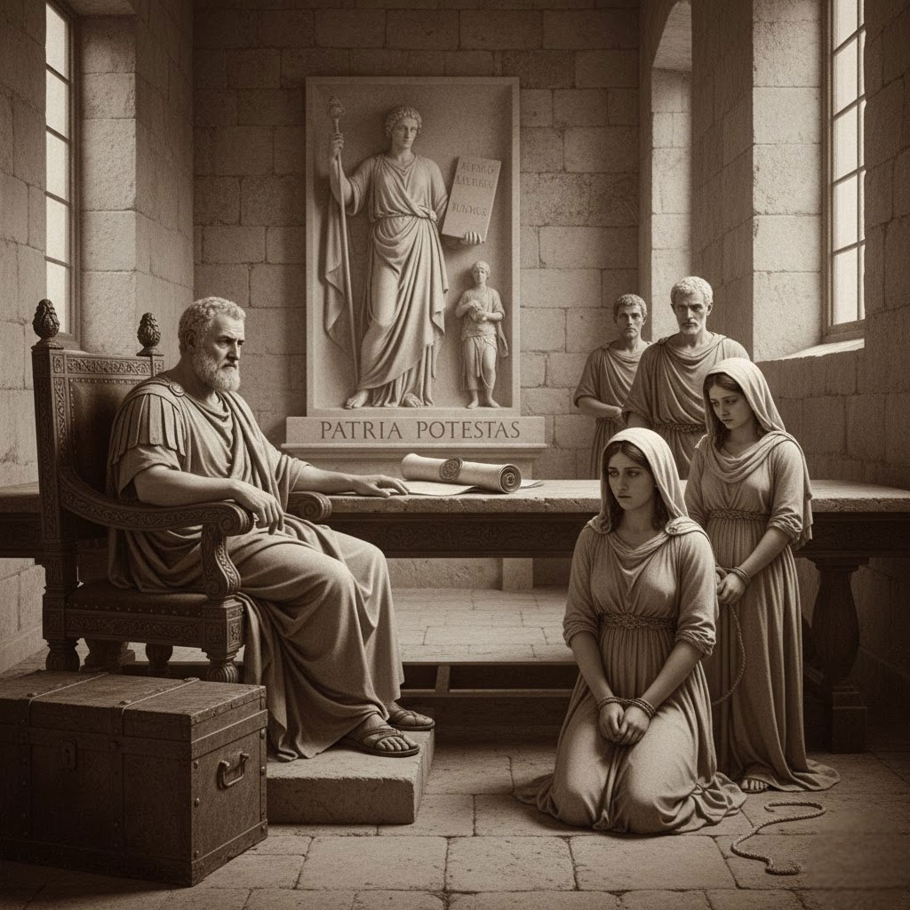 Ի դէպ, այս բոլորը լոկ օրէնքներ չէին. շատ մը տեղեր նոյնիսկ դրուած են գործադրութեան. օրինակ՝ պատմութիւնը կը յիշէ, թէ Արրիոս Պալպուս անունով ազնուական ու հարուստ մարդ մը կը սպաննէ իր սեփական որդին՝ լրտեսութեան մէջ կասկածելուն համար. պետութիւնը չի միջամտեր, որովհետեւ այդ մէկը «հայրիշխանական» իրաւունք է: Հայրը իրաւունք ունէր նոյնիսկ կեանքէն զրկել այն նոր ծնած զաւակը՝ որ իր սրտովը չէր. այլ խօսքով՝ մարդու եւ մա՛նաւանդ կնոջ կեանքը կախեալ: Արու զաւակը տեղ մը մեծնալով, ամուսնանալով ու ընտանիք կազ-մելով կրնար «հայրիշխան» դառնալ, սակայն կինը մի՛շտ ալ պիտի ապրէր այդ  ընկճուած վիճակին մէջ. պապենական տան մէջ հօր իշխանութեան ներքոյ, իսկ ամուսնական կեանքին մէջ ամուսնոյն: