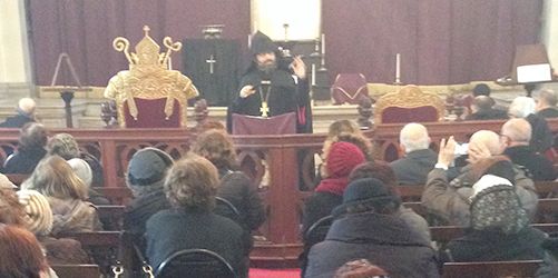 Արարողութենէն վերջ հաւատացեալները հոգեւոր ուրախութեան մթնոլորտի մէջ համախմբուեցան եկեղեցւոյ շրջափակէն ներս։