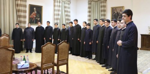 Շրջագայութեան ընդառաջ Վեհափառ Հայրապետը Մայր Աթոռի մէջ տեսակցեցաւ «Էջմիածին» երգչախումբի սաներուն հետ։ Այս առթիւ Նորին Սրբութիւնը փոխանցեց իր գնահատանքը Գէորգեան հոգեւոր ճեմարանի տեսչութեան եւ «Էջմիածին» երգչախումբի սաներուն նկատմամբ՝ ուրախութիւն յայտնելով նախաձեռնութեան առթիւ։ Ան վստահութիւն յայտնեց, որ աննախադէպ այս ձեռնարկը ոգեւորութեան ու մեծ խանդավառութեան առիթ պիտի հանդիսանայ ճեմարանականներուն մօտ՝ դրական ազդեցութիւն գործելով ուսումնական գործընթացին վրայ։ Վեհափառ Հայրապետը կարեւորեց երգչախումբի շրջագայութիւնը՝ ընդգծելով, որ Հայաստանեայց Առաքելական Եկեղեցւոյ եւ հայ ժողովուրդի հոգեւոր-ազգային մշակոյթը պիտի ներկայացուի երգի միջոցաւ։