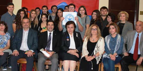 Հանդիպման ընթացքին Հրանոյշ Յակոբեան երիտասարդներուն յանձնեց «Սորվէ մեծերէն» գիրքէն օրինակներ։
