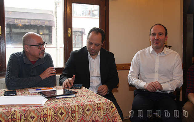 Նիքոլա Դաւիթեան, Պենժամէն Ապտան եւ Լեւենտ Շէնսեւէր երէկ ընդհանուր գիծերու առմամբ շեշտը դրին մարդկութեան դէմ կատարուած յանցագործութիւններուն վրայ։ Անոնք համոզուած են, որ ուրացումը կը նշանակէ շարունակութիւն մը։ Հետեւաբար, ճշմարտութիւնները պէտք է արտայայտուին եւ այս ուղղութեամբ պէտք է հանդէս գալ ժողովրդավարական պայքարով մը։ Այս ծիրին մէջ է, որ անոնք կ՚ընկալեն 2015 թուականին զուգադիպած հարիւրերորդ տարելիցը։ Իրենց տեսանկիւնէն առաջնահերթ կը նկատուի, որ թուրքերը, հայերը կամ ամէն տեսակ պատկանելիութենէ անդին՝ մարդկային հարթութեան մը վրայ պայքար պէտք է մղել այս խնդրին առընչութեամբ։ Ատենախօսները բացատրեցին, որ իրենց ցանկութեամբ մարդկութեան դէմ կատարուած այս յանցագործութիւնը պէտք է ոգեկոչուի բոլորին կողմէ ու բոլորը պէտք է արտայայտեն իրենց հակազդեցութիւնն ու ակնկալութիւնները՝ ժողովրդավարական չափանիշներու շրջագծին մէջ։